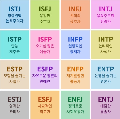 | E(extraversion 외향) | I(introversion 내향) |